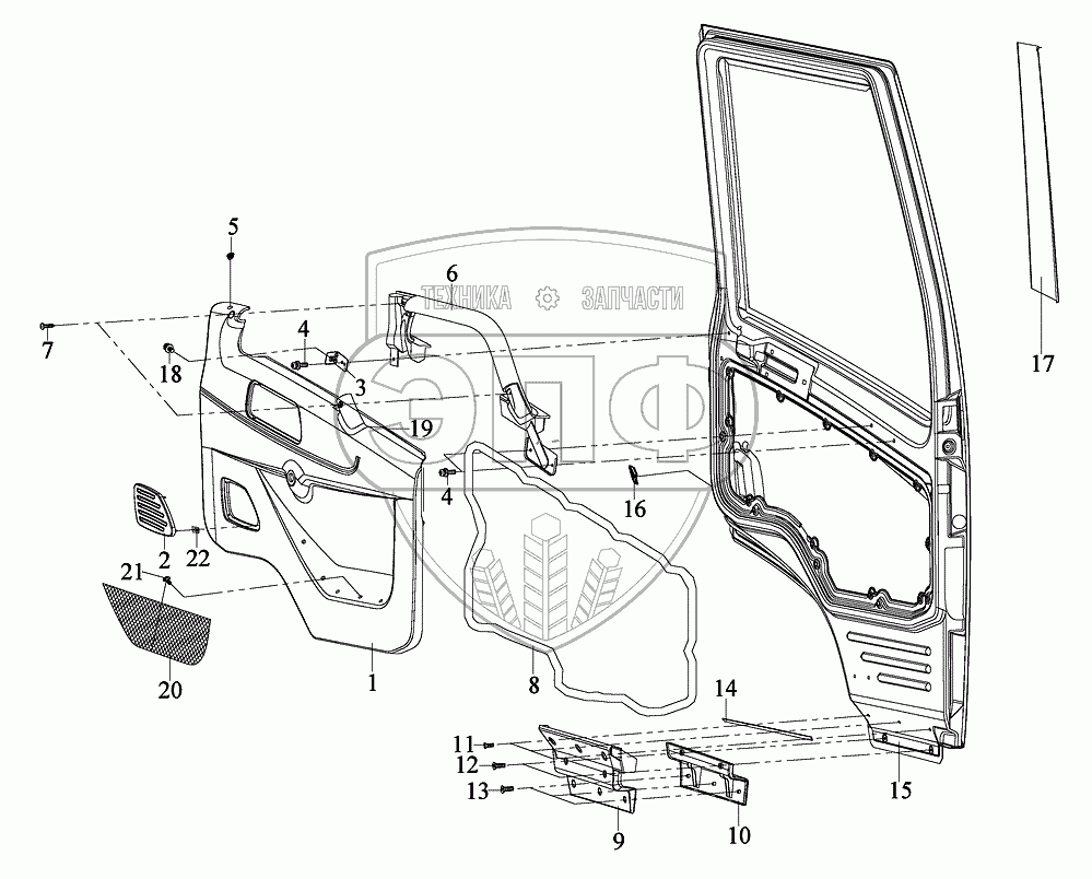 Каталог запасных частей к технике: FAW CA-3252. Внутренняя облицовка двери