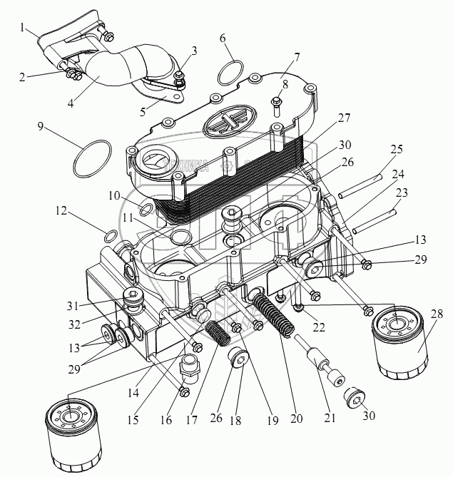 | 27 | 1013010-36D | Корпус охладителя моторного масла в сборе | Нет на складе | |