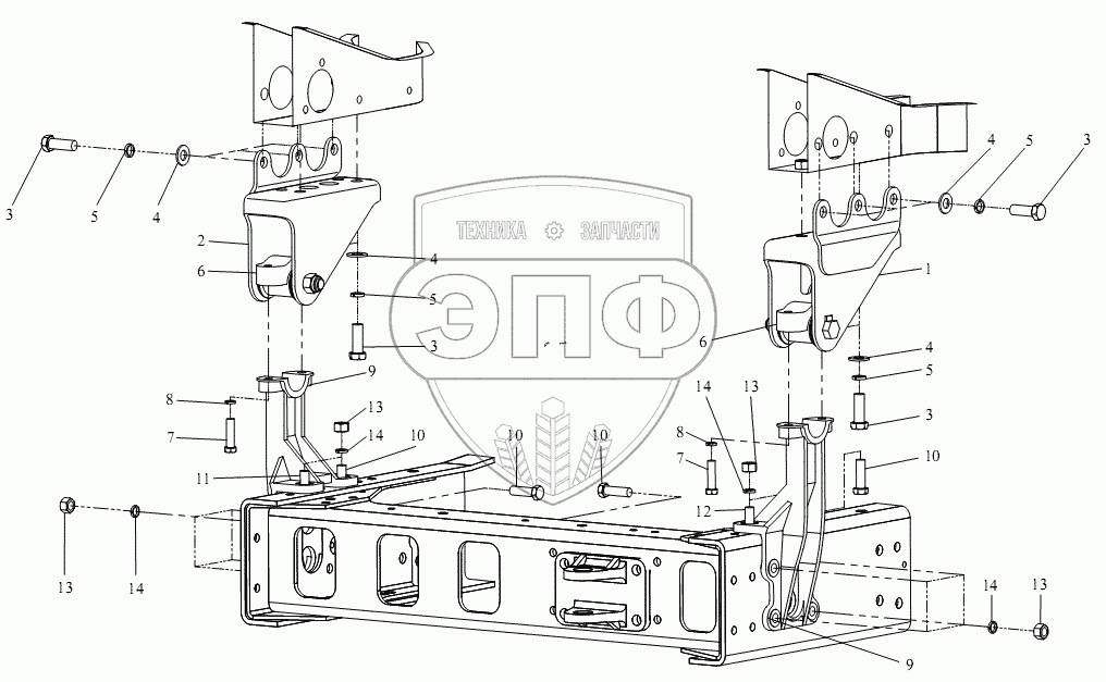 Каталог запасных частей к технике: FAW CA-3252 (P2K2BT1A). Передняя подвеска кабины