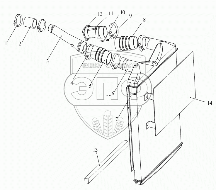| 3 | 1119056A263 | Всасывающий трубопровод промежуточного охладителя | Нет на складе | |