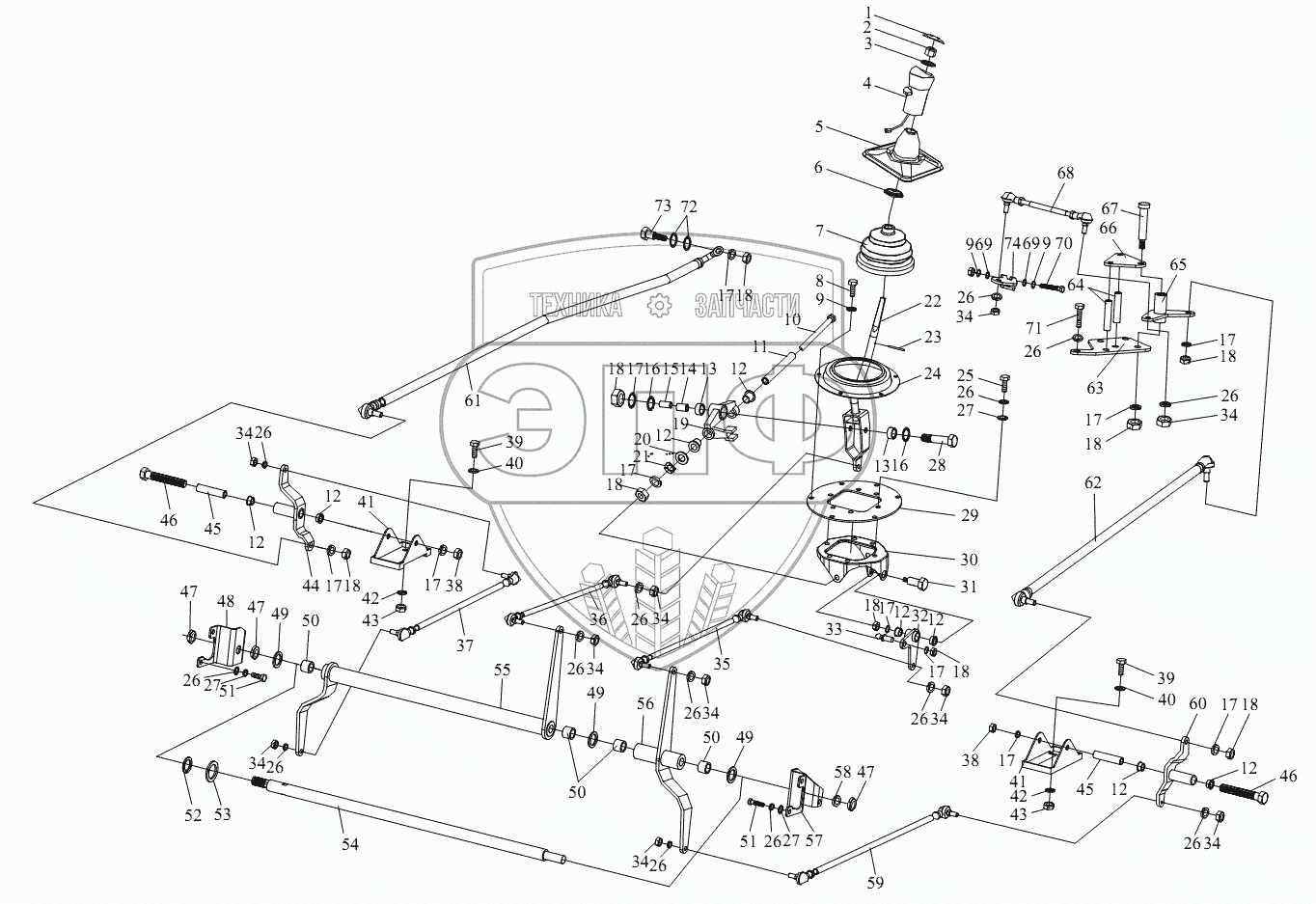 | 68 | 1703210B152 | 4 - я штанга выбора передач в сборе | Нет на складе | |