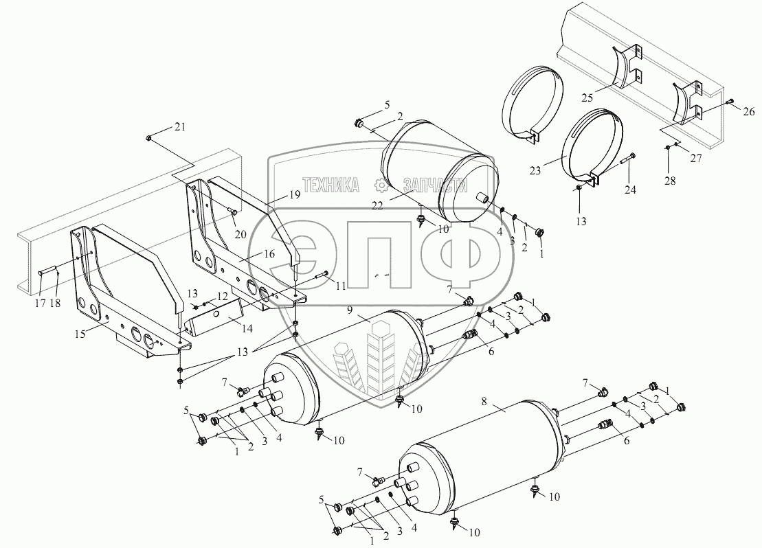 | 8 | 3513070-515 | Двухконтурный воздушный резервуар в сборе | Нет на складе | |