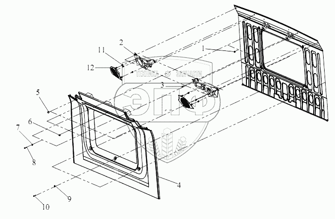 Каталог запасных частей к технике: FAW CA-3252 (P2K2T1A). Интерьер заднего оперения