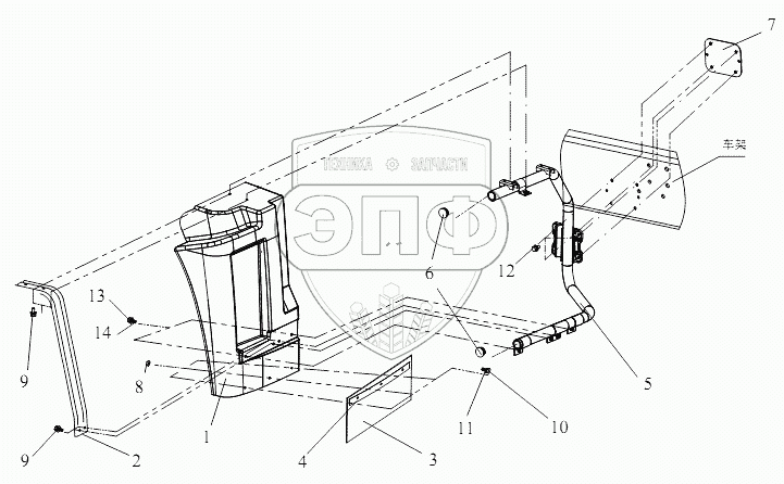 Каталог запасных частей к технике: FAW CA-3252 (P2K2T1A). Задний грязезащитный козырек
