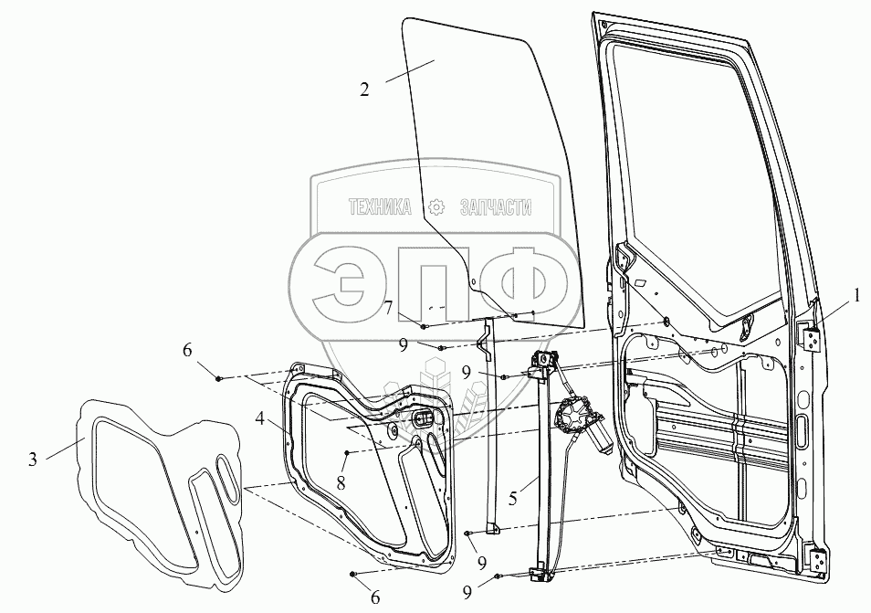 Каталог запасных частей к технике: FAW CA 3310 серии J6. Передние двери