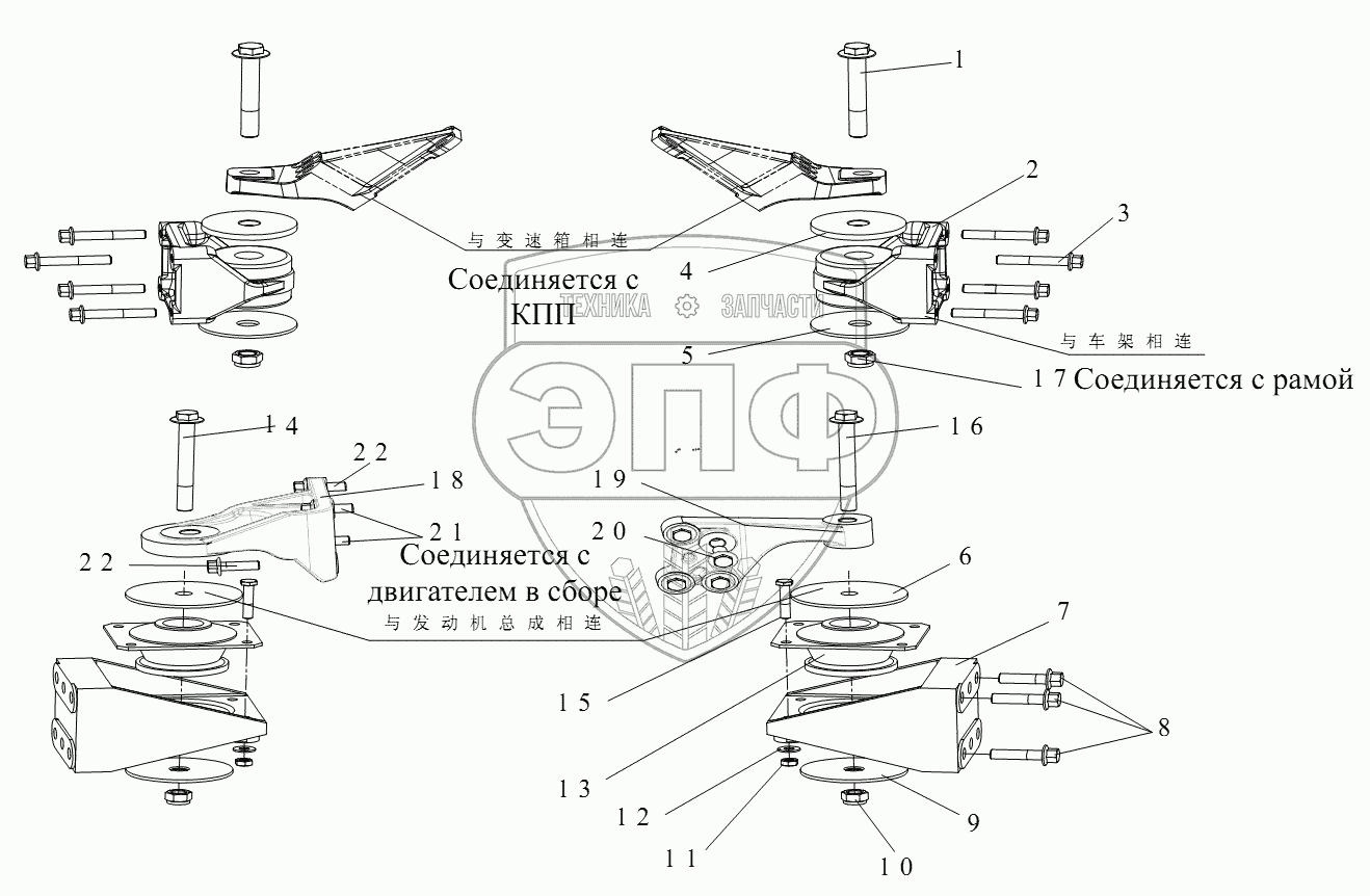 Каталог запасных частей к технике: FAW CA 3310 серии J6. Подвеска двигателя