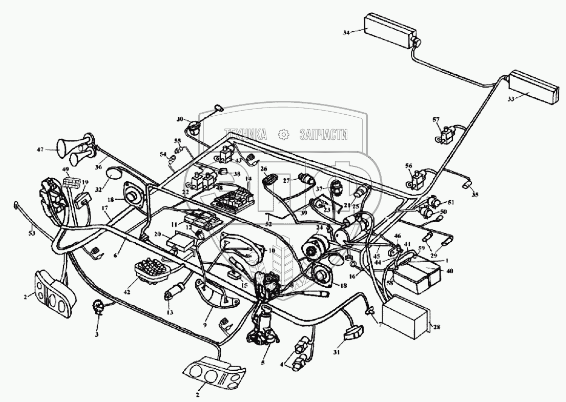 | 41 | 3724175-560/a | Агрегат электропроводок - аккумулятор + к общему выключателю питания | Нет на складе | |