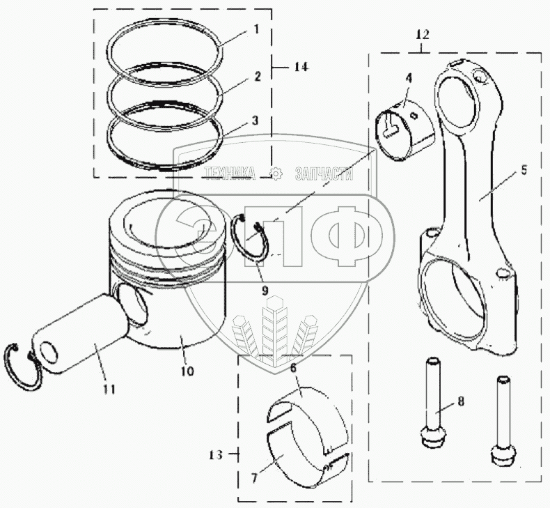 Каталог запасных частей к технике: FAW CA-3312 (P2K2B2T4A2Z). Поршень, шатун