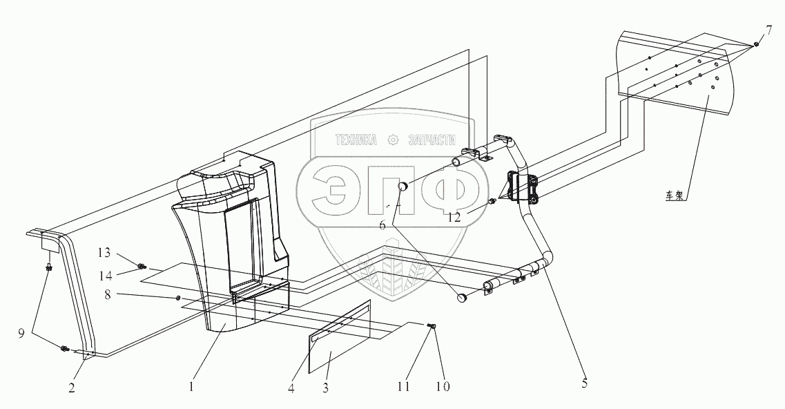 Каталог запасных частей к технике: FAW CA-3312 (P2K2LT4E). Задний грязезащитный козырек