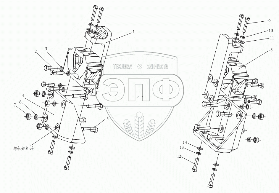 Каталог запасных частей к технике: FAW CA-3312 (P2K2LT4E). Задняя подвеска двигателя