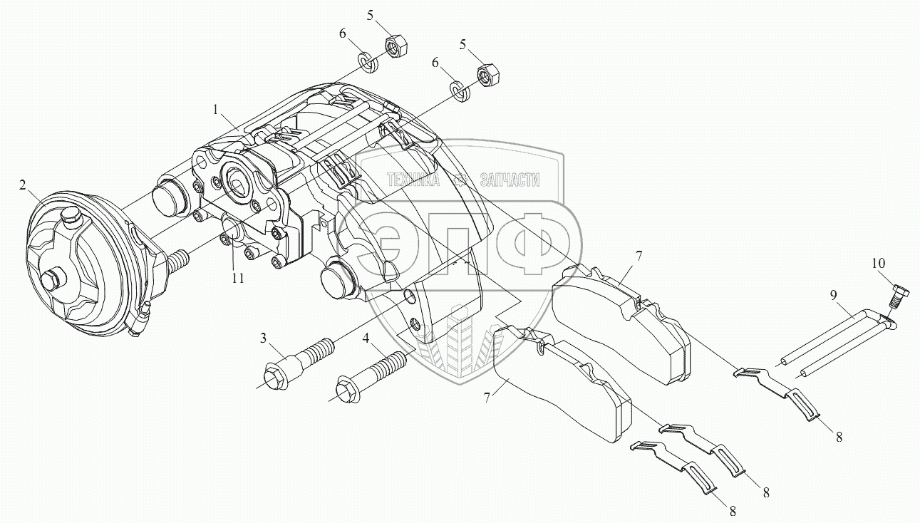 Каталог запасных частей к технике: FAW CA-4180 (P66K2A). Передний дисковый тормоз