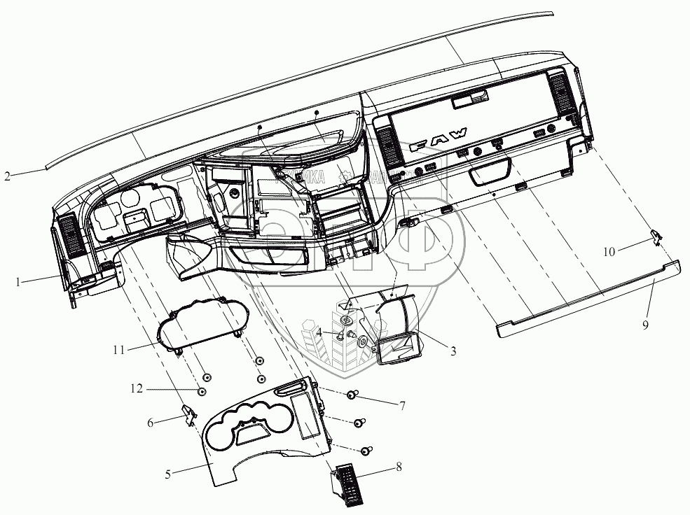 Каталог запасных частей к технике: FAW CA-4180 (P66K2A). Приборная панель