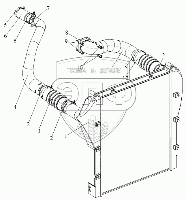 Каталог запасных частей к технике: FAW CA-4180 (P66K2A). Промежуточный охладитель, трубопровод