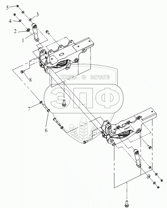 Каталог запасных частей к технике: FAW CA-4180 (P66K2A). Устройство передней подвески кабины