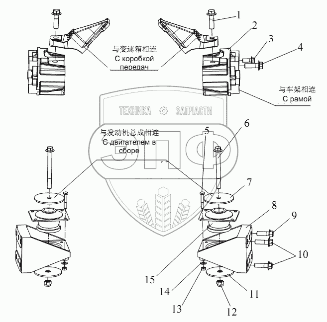 Каталог запасных частей к технике: FAW CA-4250 (P66K22T1A1EX). Подвеска двигателя
