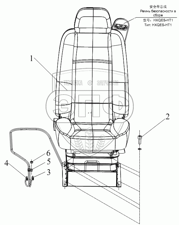 Каталог запасных частей к технике: FAW CA-4250 (P66K22T1A1EX). Сиденье водительское