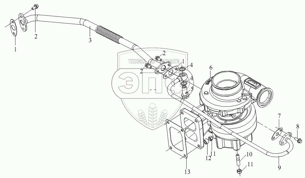 Каталог запасных частей к технике: FAW CA-4250 (P66K22T1A1EX). Система турбонаддува
