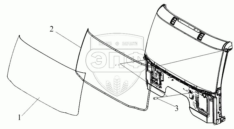 Каталог запасных частей к технике: FAW CA-4250 (P66K22T1A1EX). Стекло переднего ветрового окна