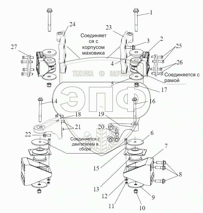 Каталог запасных частей к технике: FAW CA-4250 (P66K24T1E5). Подвеска двигателя