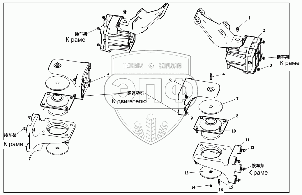 Каталог запасных частей к технике: FAW CA-4250 (P66K2T1A1EX). Подвеска двигателя