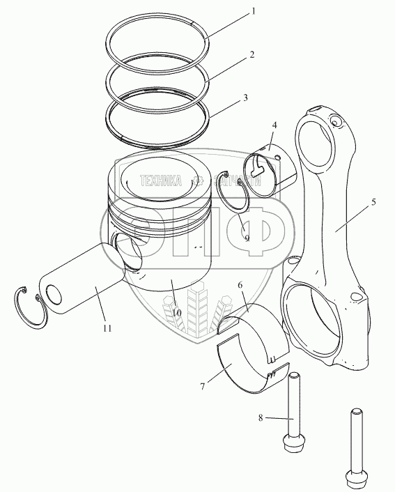 Каталог запасных частей к технике: FAW CA-4250 (P66K2T1A1EX). Поршень, шатун