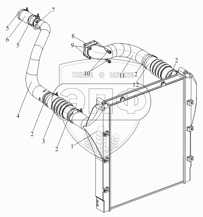 Каталог запасных частей к технике: FAW CA-4250 (P66K2T1A1EX). Промежуточный охладитель, трубопровод