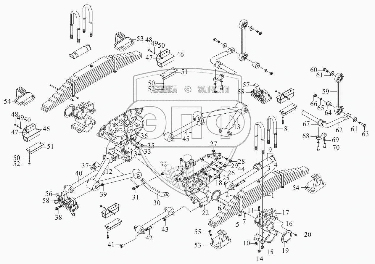 | 54 | 2912450A377 | Опора задней рессоры в сборе - правая сторона среднего места, левая сторона заднего моста | Нет на складе | |