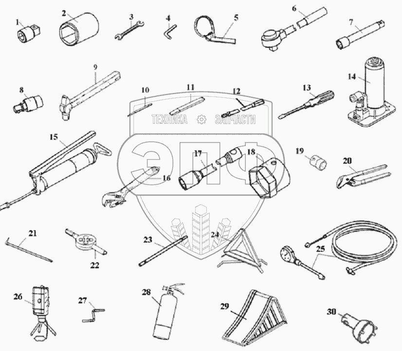 Каталог запасных частей к технике: FAW CA-4250 (P66K2T1A1EX). Сопроводительные инструменты