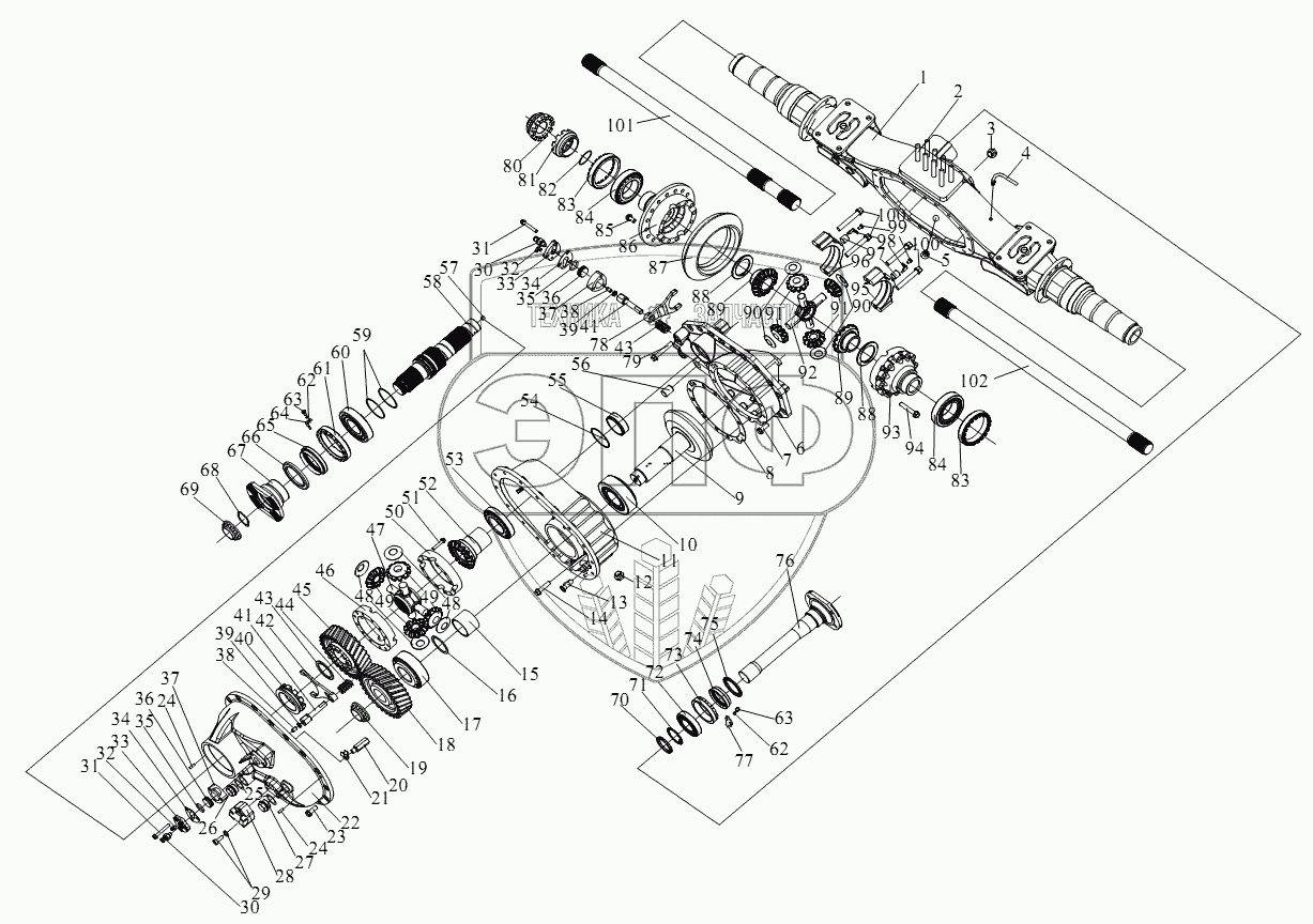 Каталог запасных частей к технике: FAW CA-4250 (P66K2T1A1EX). Средний мост