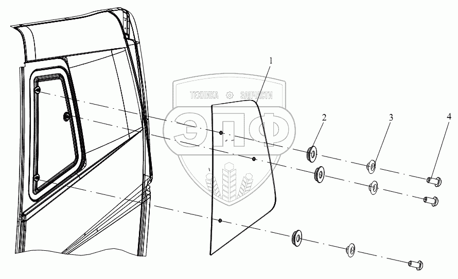 Каталог запасных частей к технике: FAW CA-4250 (P66K2T1A1EX). Стекло бокового окна