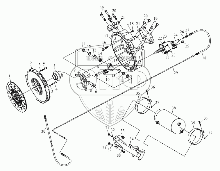 Каталог запасных частей к технике: FAW CA-4250 (P66K2T1A1EX). Сцепление