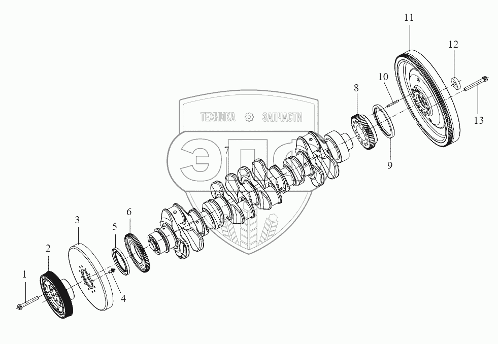 Каталог запасных частей к технике: FAW CA 4250 P66K24T1E. Crankshaft and Flywheel