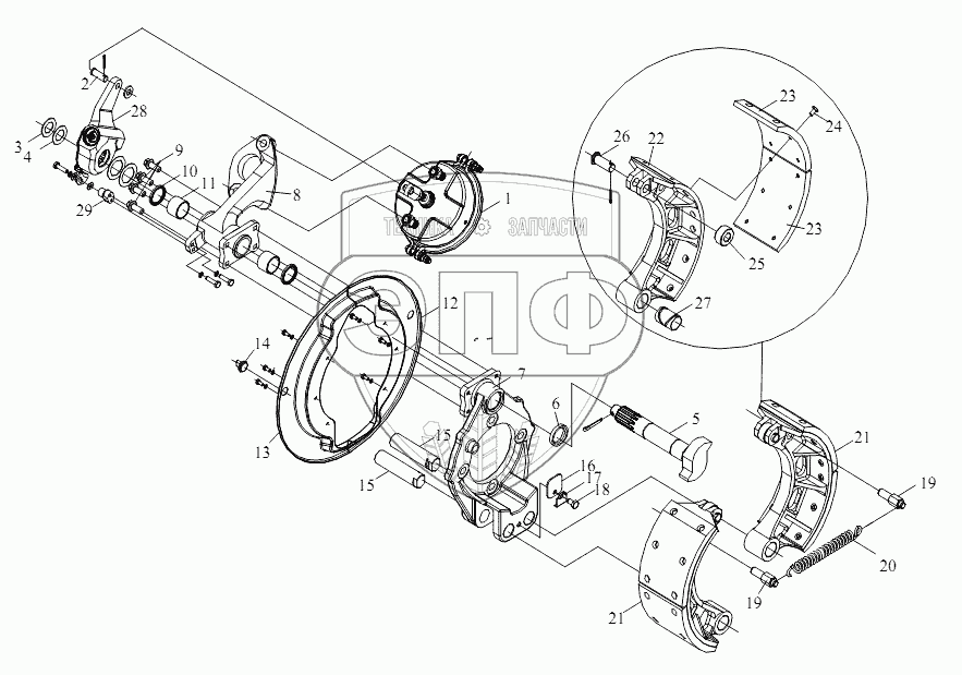 Каталог запасных частей к технике: FAW CA 5250 (GJBP66K2T1E4). Тормоз переднего колеса