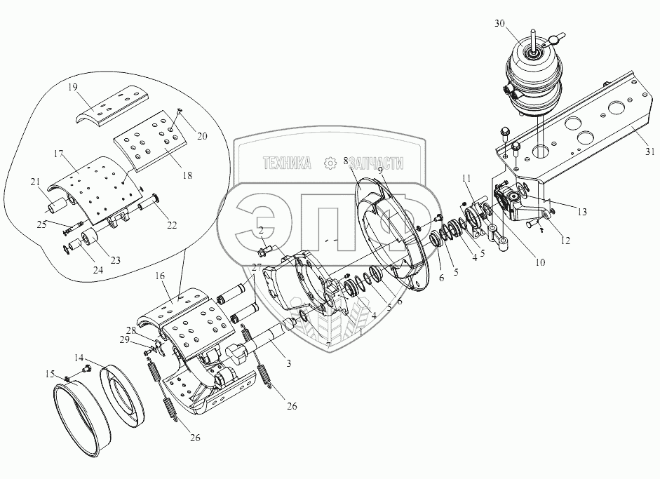 | 31 | 3502126А483 | Опорная плита - пружинный тормозной цилиндр | Нет на складе |