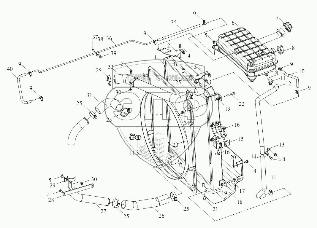Каталог запасных частей к технике: FAW CA 5250 (JSQP64K1T1E4). Система охлаждения