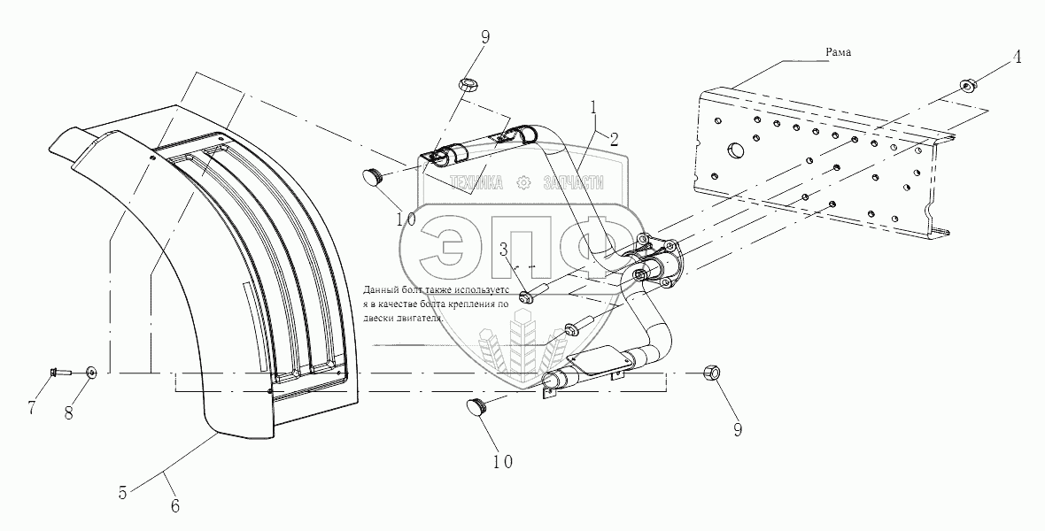 | 2 | 5103370-48V | Трубчатая опора правого заднего брызговика в сборе | Нет на складе | |