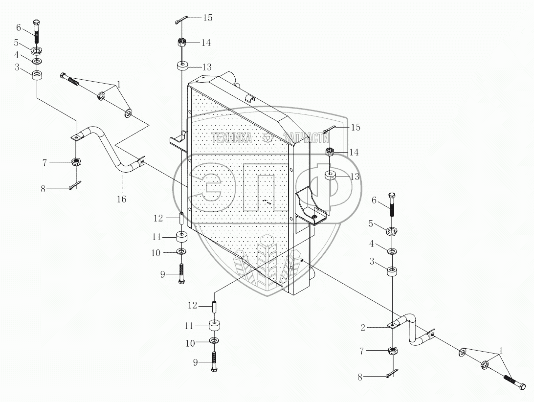 Каталог запасных частей к технике: Foton 3253DLPJE-0RZA01. 1S12511320103 Radiator suspension