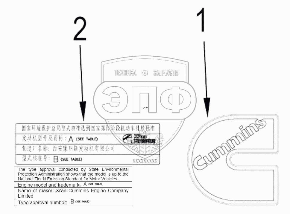 Каталог запасных частей к технике: Foton 4189SLFKA-AEZA01. 1S42591000201 Engine-name plate