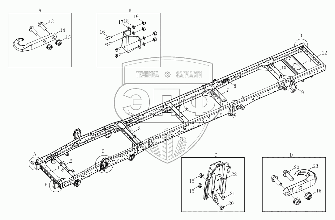 | 10 | 1104928000018 | Поперечная балка на конце проушины задней рессоры | Нет на складе | |