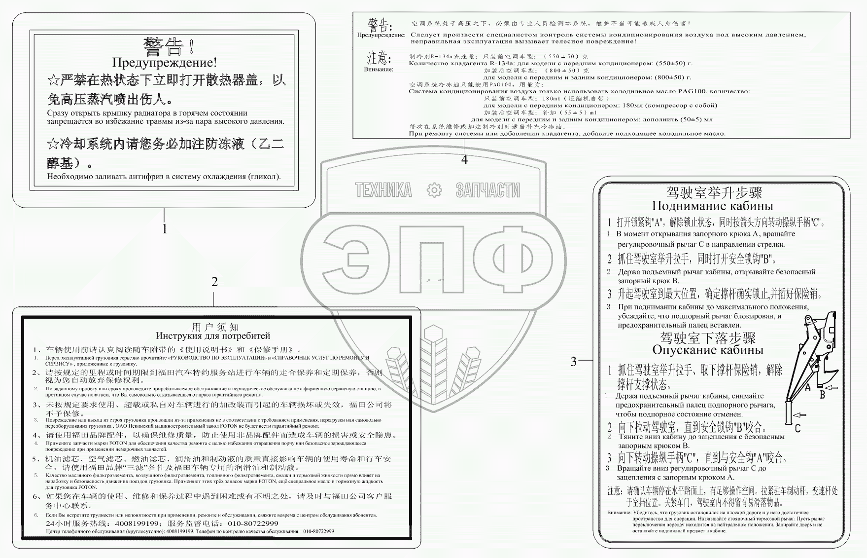 Каталог запасных частей к технике: Foton BJ1041, BJ1069 (Ollin). 1S10493930103 Табличка