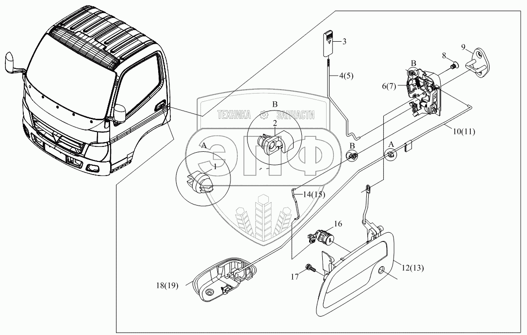 | 12 | 1B18061500036 | Внешняя скоба замка левой передней двери в сборе | Нет на складе | |
