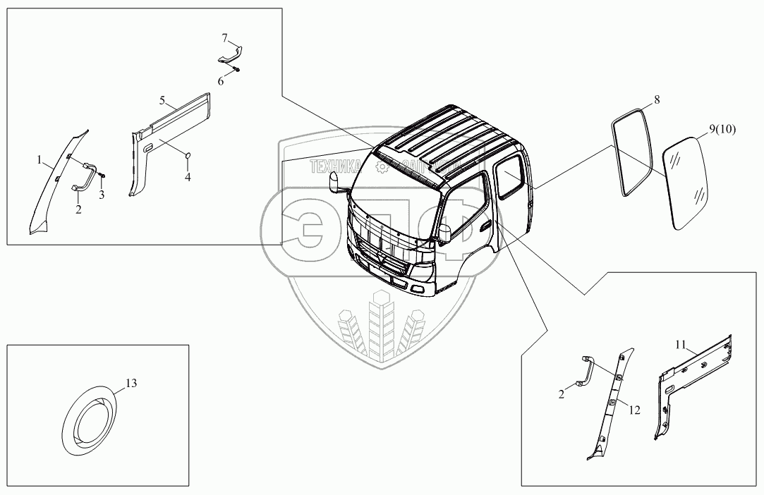 | 12 | 1В18054100427 | Монтажный комплект щитка левой передней колонки | Нет на складе | |