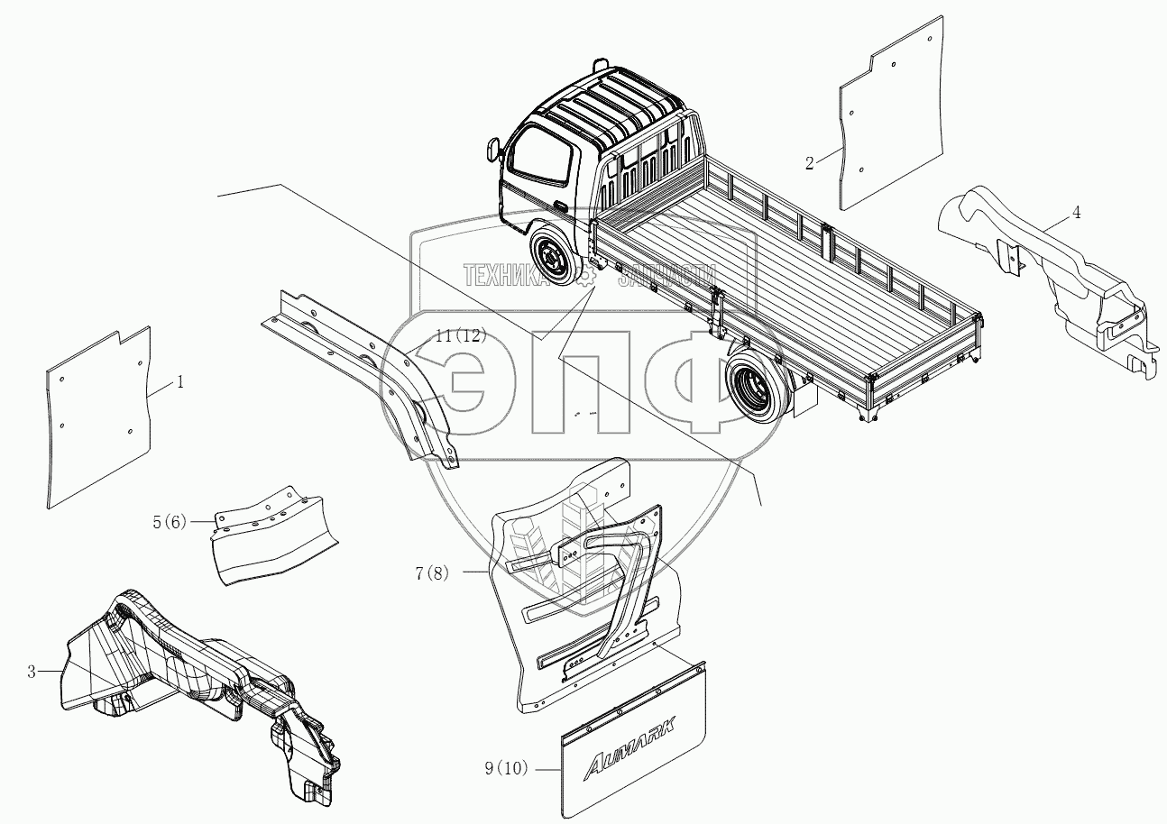 Каталог запасных частей к технике: Foton BJ1051, BJ1061 (Aumark). 1SB2008430207 Брызговики колеса