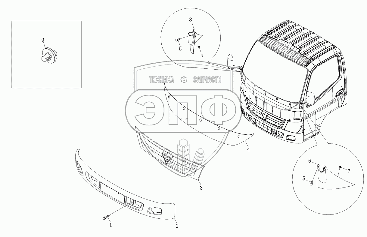 Каталог запасных частей к технике: Foton-BJ1039. Аксессуары передней панели, бампер