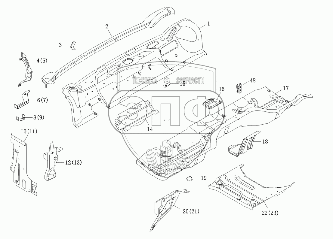 Каталог запасных частей к технике: Foton-BJ1039. Пол кабины