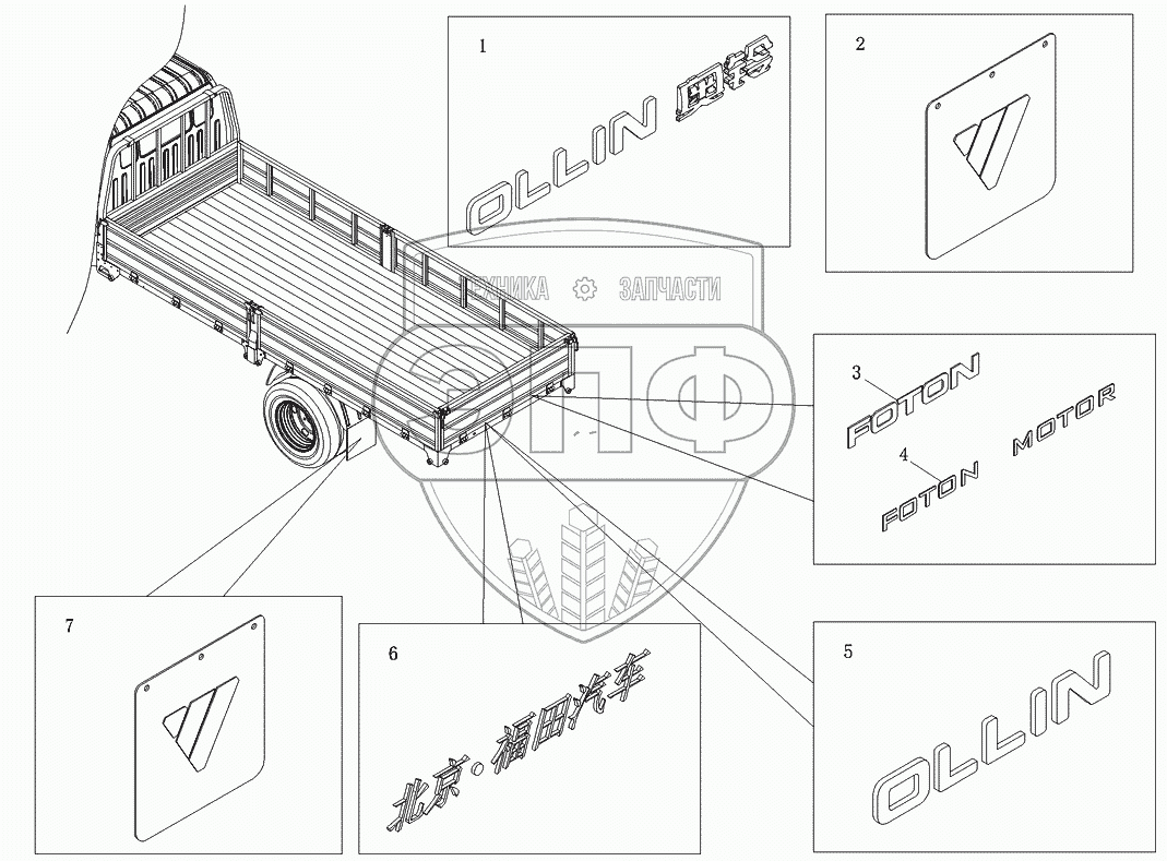 Каталог запасных частей к технике: Foton-BJ1049. Принадлежности платформы