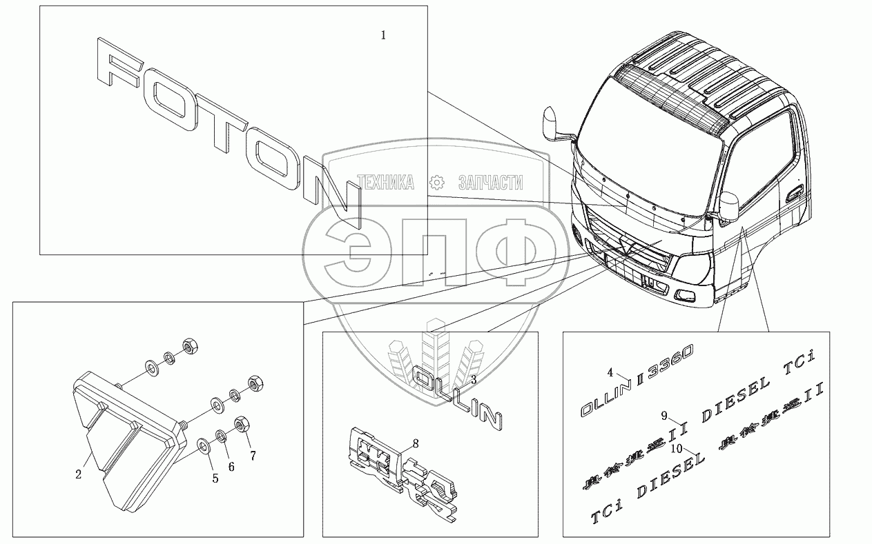| 1 | 1В18050500023 | Знак “FОТОN” | Нет на складе | |