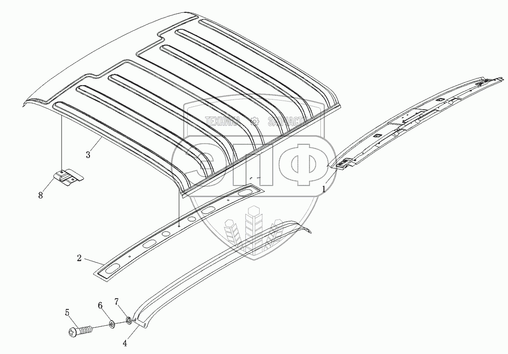 Каталог запасных частей к технике: Foton-BJ1049. Крыша 1,5-рядной кабины