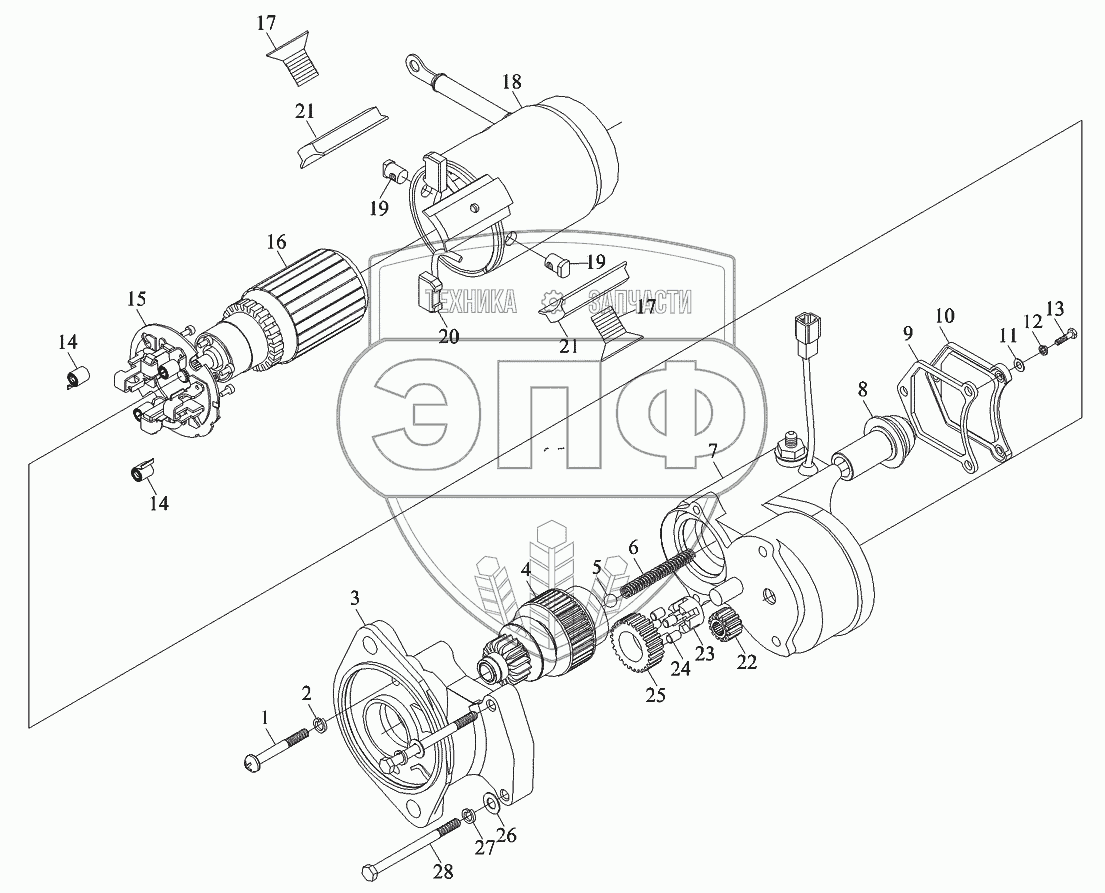 Каталог запасных частей к технике: Foton-BJ1049. Стартер