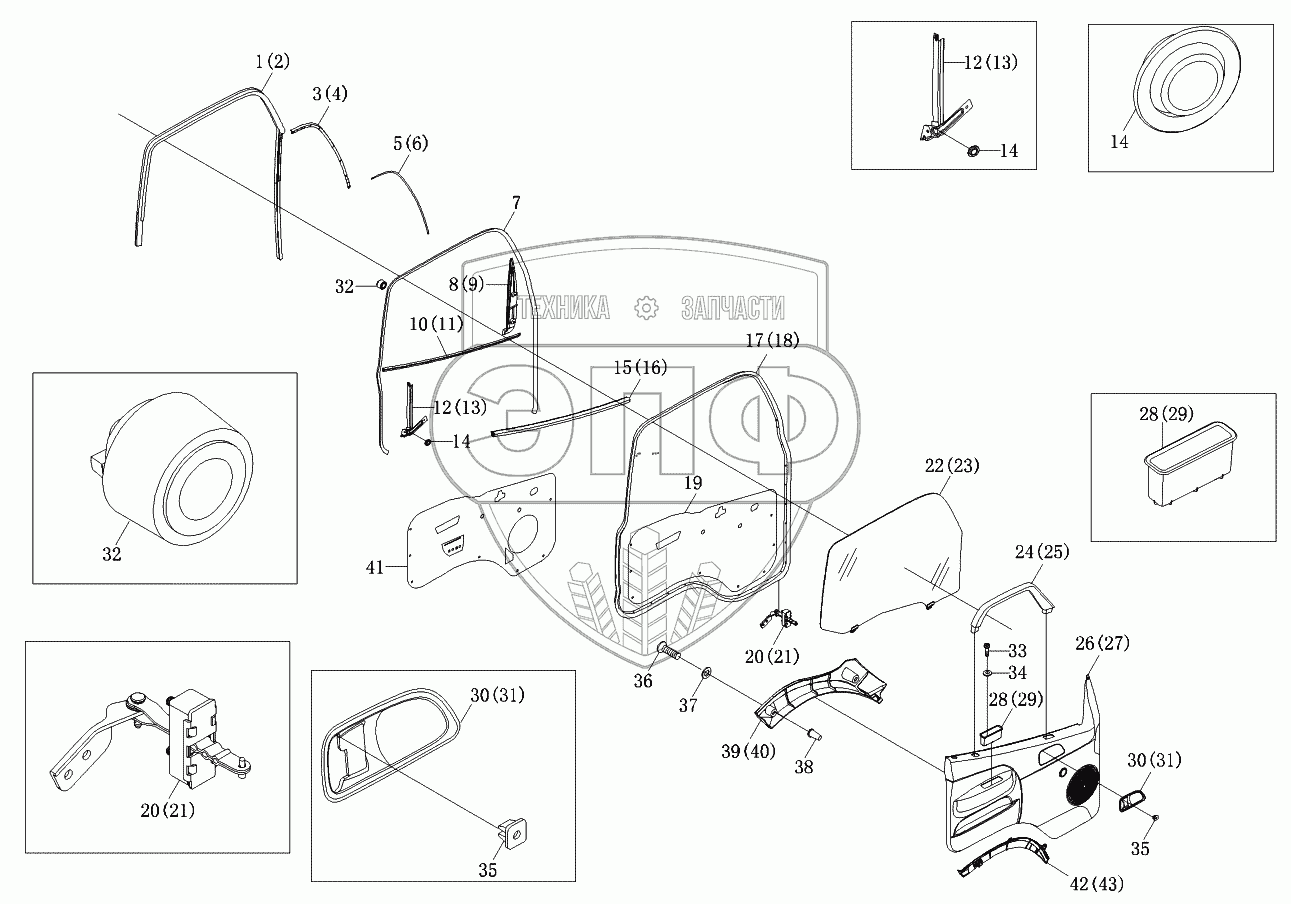 Каталог запасных частей к технике: Foton-BJ1069. Аксессуары двери